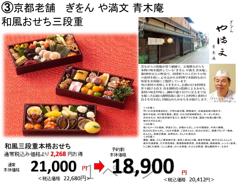③京都老舗 ぎをん や満文 青木庵 和風おせち三段重